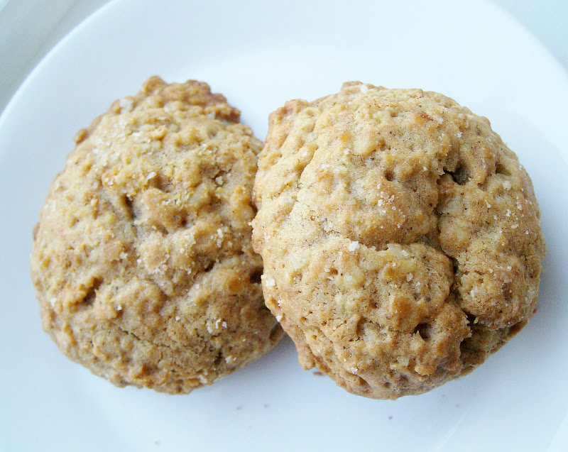 While these are still cookies, and not a health food, I always seem to feel less guilty about eating sweets made with oatmeal, pumpkin, and nuts. And these would be great with the addition of either raisins or dried cranberries. If you added those, you would have 4 food groups packed into your cookie. That would make them practically a meal! I like the sound of that. These are hearty and wholesome, and could definitely support some whole grain flour if you want to sneak some in!